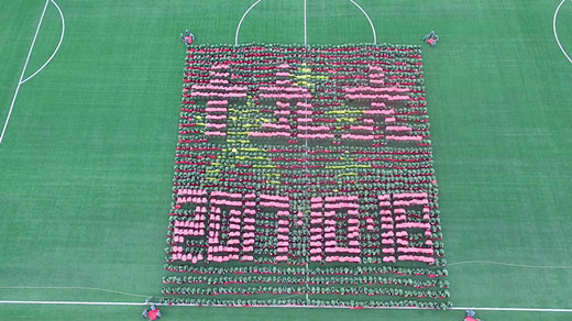 伴着雄壮的国歌缓缓响起,五星红旗冉冉升起,全校目光着国旗向上移动,心中那份对祖国的热爱与自豪感也油然而生。首先,由军训新生组成的方阵,通过教官鼓声指令,变换队形,组成各种字样与图案,从简单的阿拉伯数字,到复杂的巨轮图形,从“十九大”到“广厦学院”字形,气势磅礴,震撼人心,表达了广厦学子朝气蓬勃的精神面貌和对十九大胜利召开的美好祝愿。