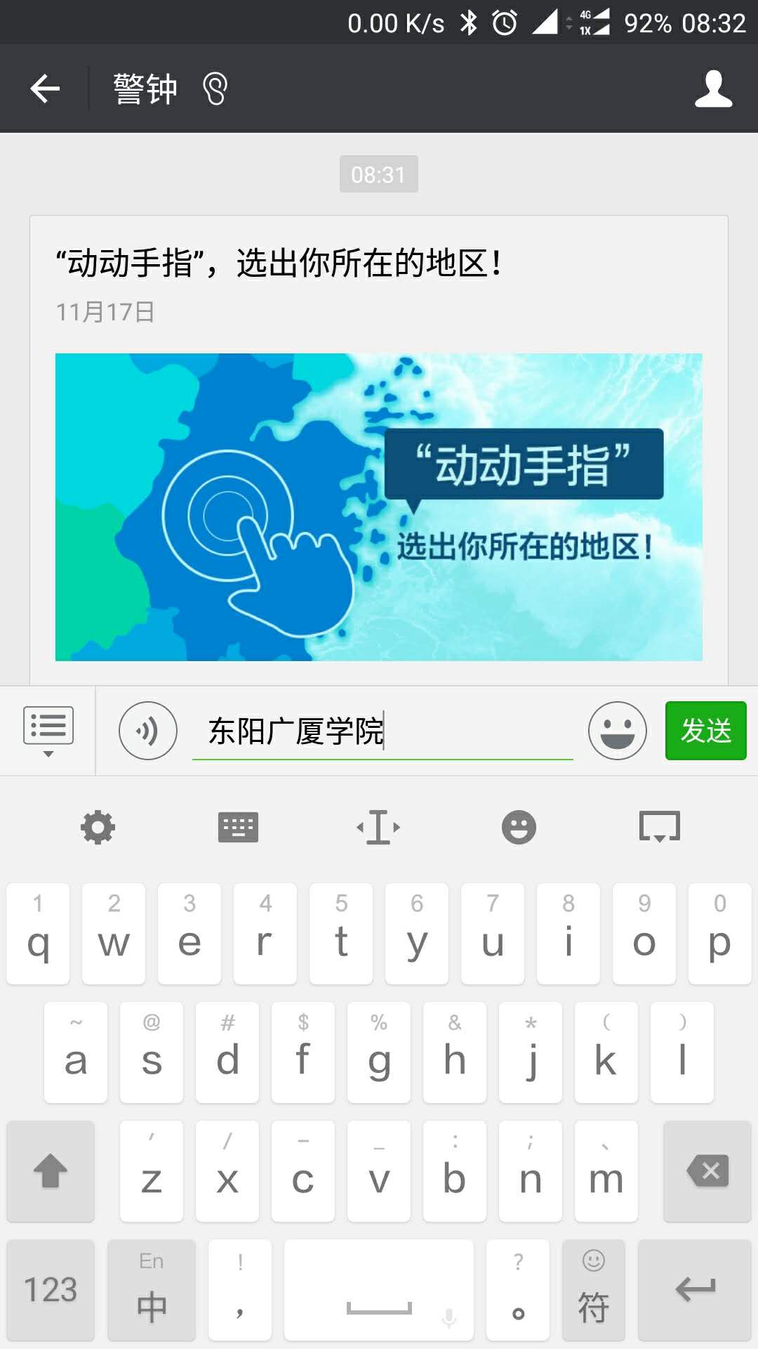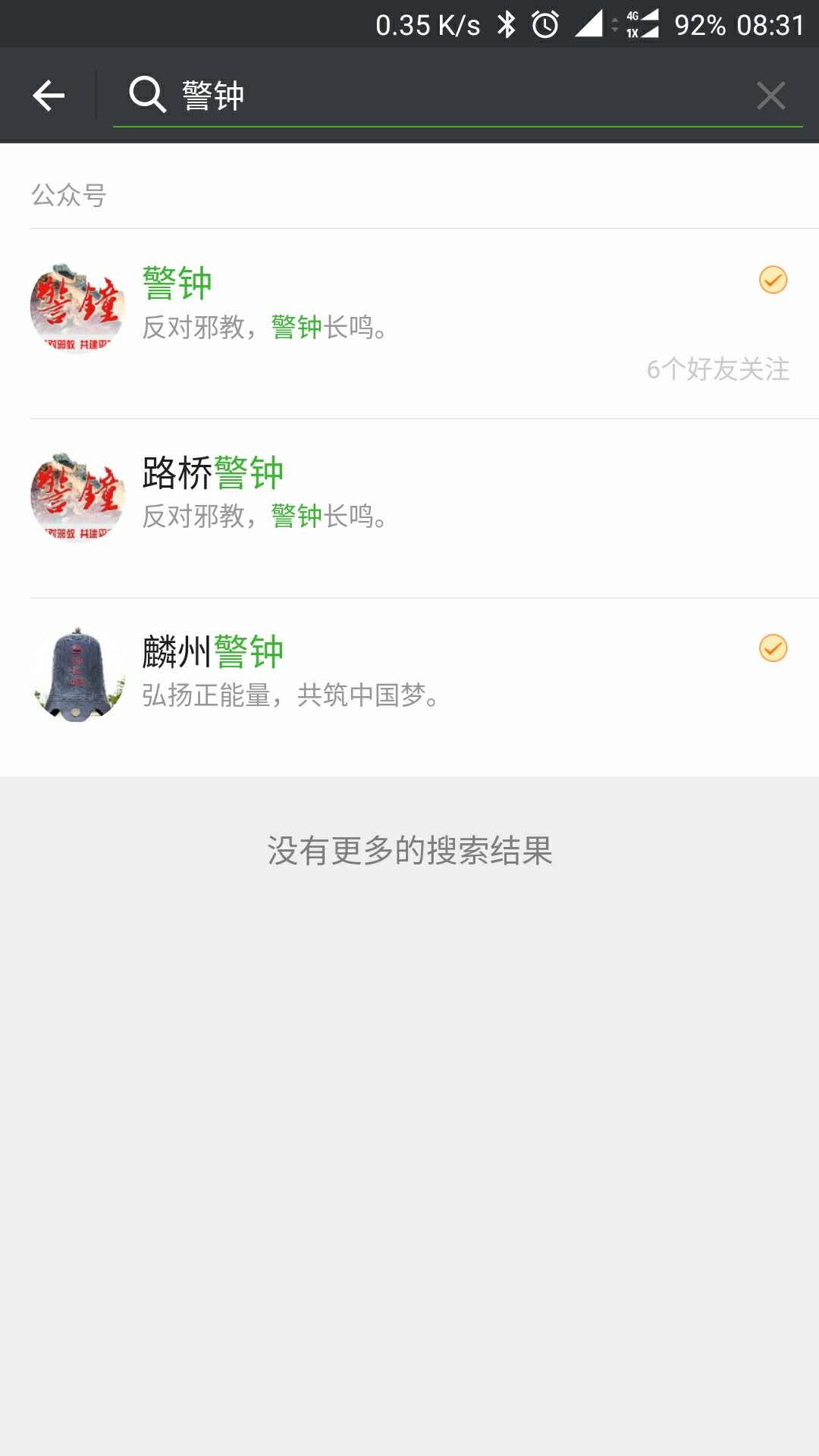 “反对邪教,警钟长鸣”请师生一起来关注警钟 来源: 作者: 发布时间:2017-11-17 浏览次数: 次 【字体:小 大】 “反对邪教,警钟长鸣”请师生一起来关注警钟。 “警钟”微信公众号关注流程: 1、登录微信,点击通讯录,点击公众号,点击添加,输入“zjjingzhong”或“警钟”,点击关注或扫一扫微信二维码关注。2、关注成功后,在留言栏输入“东阳广厦学院”,便于后台查询关注的归属地(此项操作很重要)。 或 打开微信点击添加 点击添加朋友 输入 选择警钟 点击关注 终审:党建思政 【打印正文】 相关信息