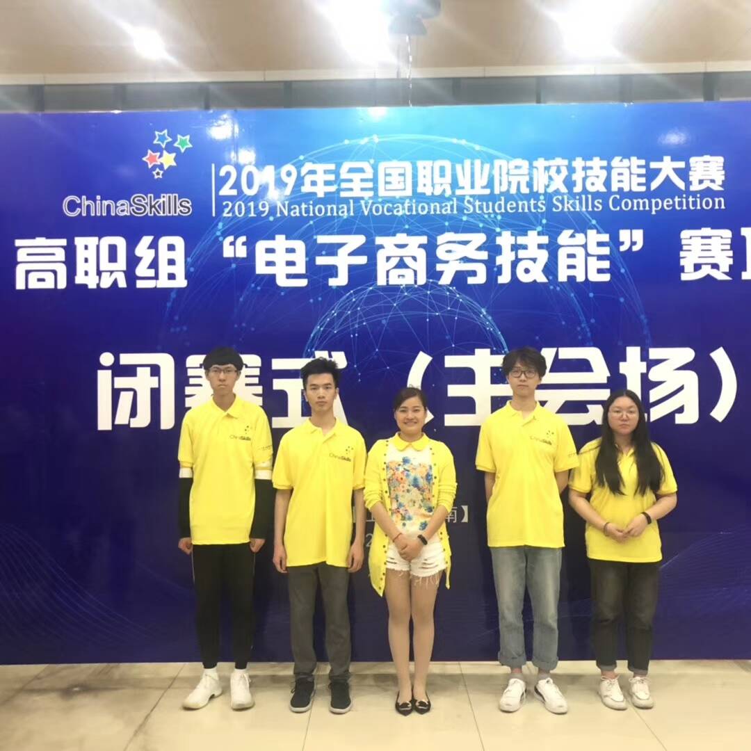 本次比赛骆丽红、何妍妍两位老师指导,陆佳峰、尚冰操、周嘉仪、姚意伦参赛。指导教师和参赛选手牺牲了大量的休息时间,认真备赛。电子商务技能赛项是模拟对抗赛,每次比赛都要5个小时,还要不断的总结与分析竞赛中的数据及得失,经常持续到深夜。该赛项也得到了学院的高度重视及领导的大力支持。
